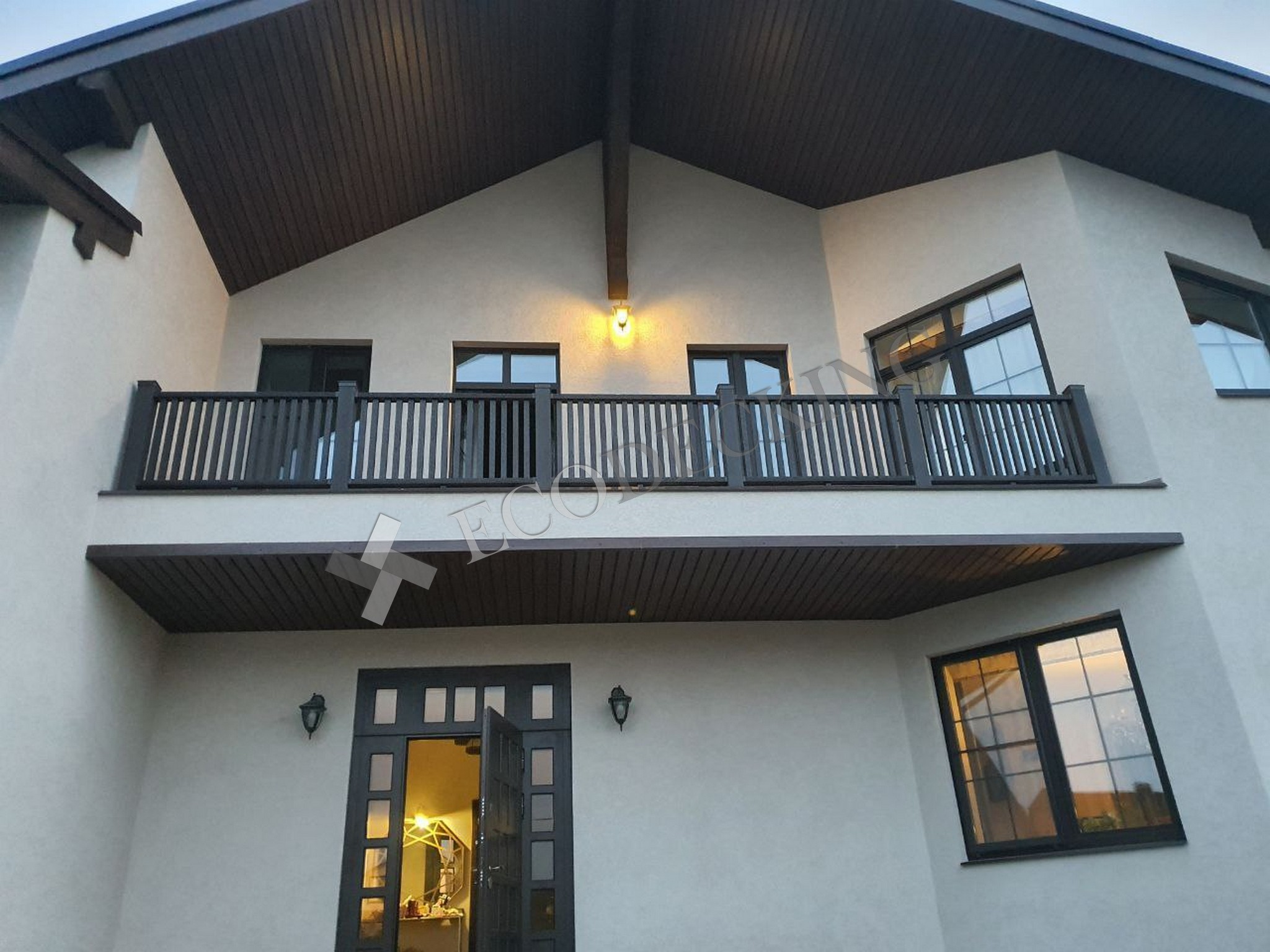 Ограждение балкона частного дома цвет Венге. Монтаж выполнялся в мае 2022 года.