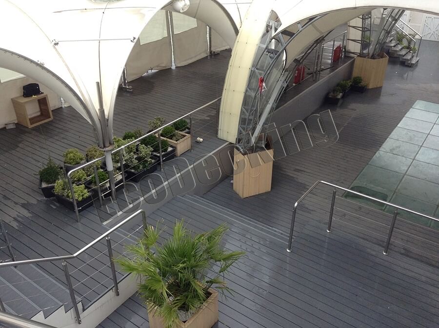 Специалистами нашей компании был поставлен материал и выполнен монтаж на металлокаркас напольного покрытия из ДПК в объеме порядка 2000 кв.м.