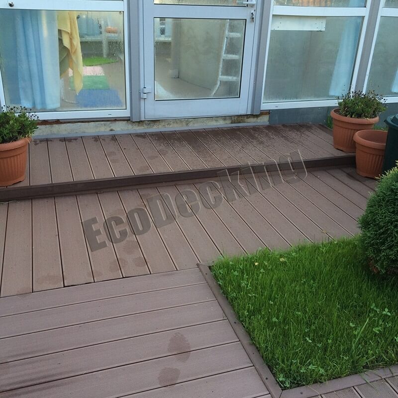 На данном объекте представлена террасная доска ECODECKING цвета «Кофе» и обработкой «Брашинг».