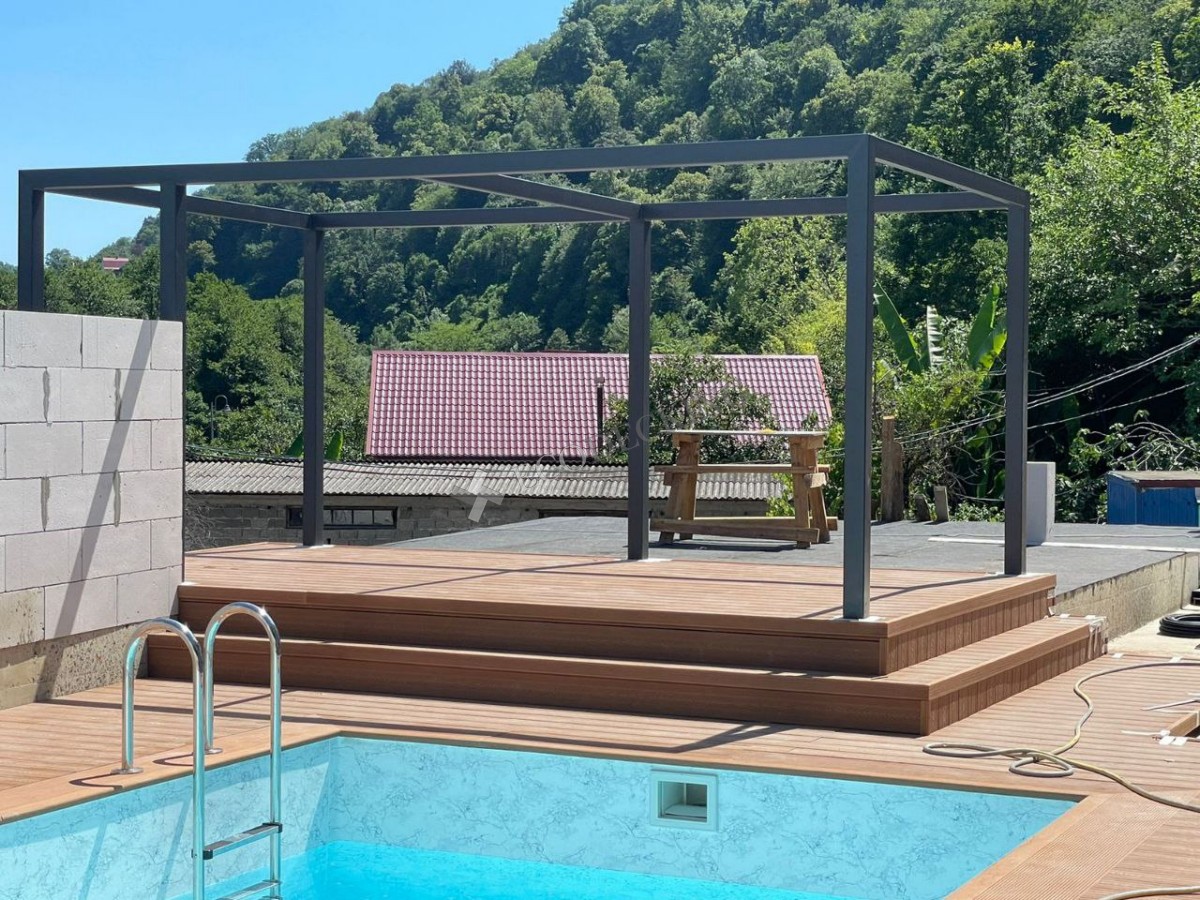 Террасная доска Ecodecking Комфорт 3D монтаж возле бассейна