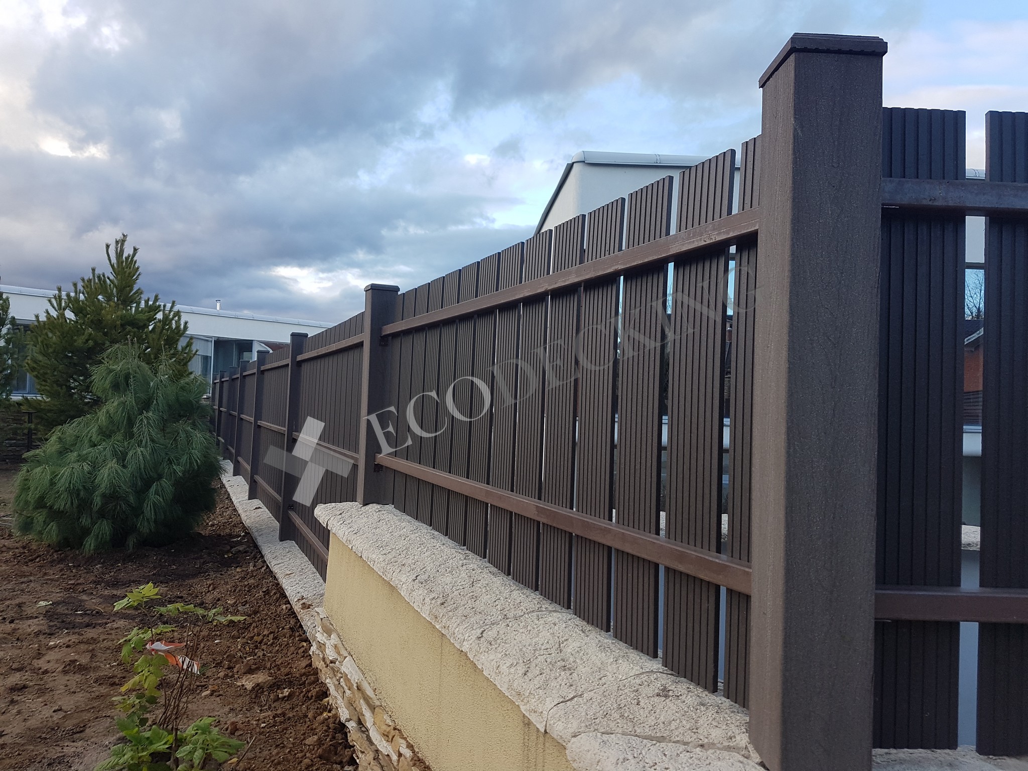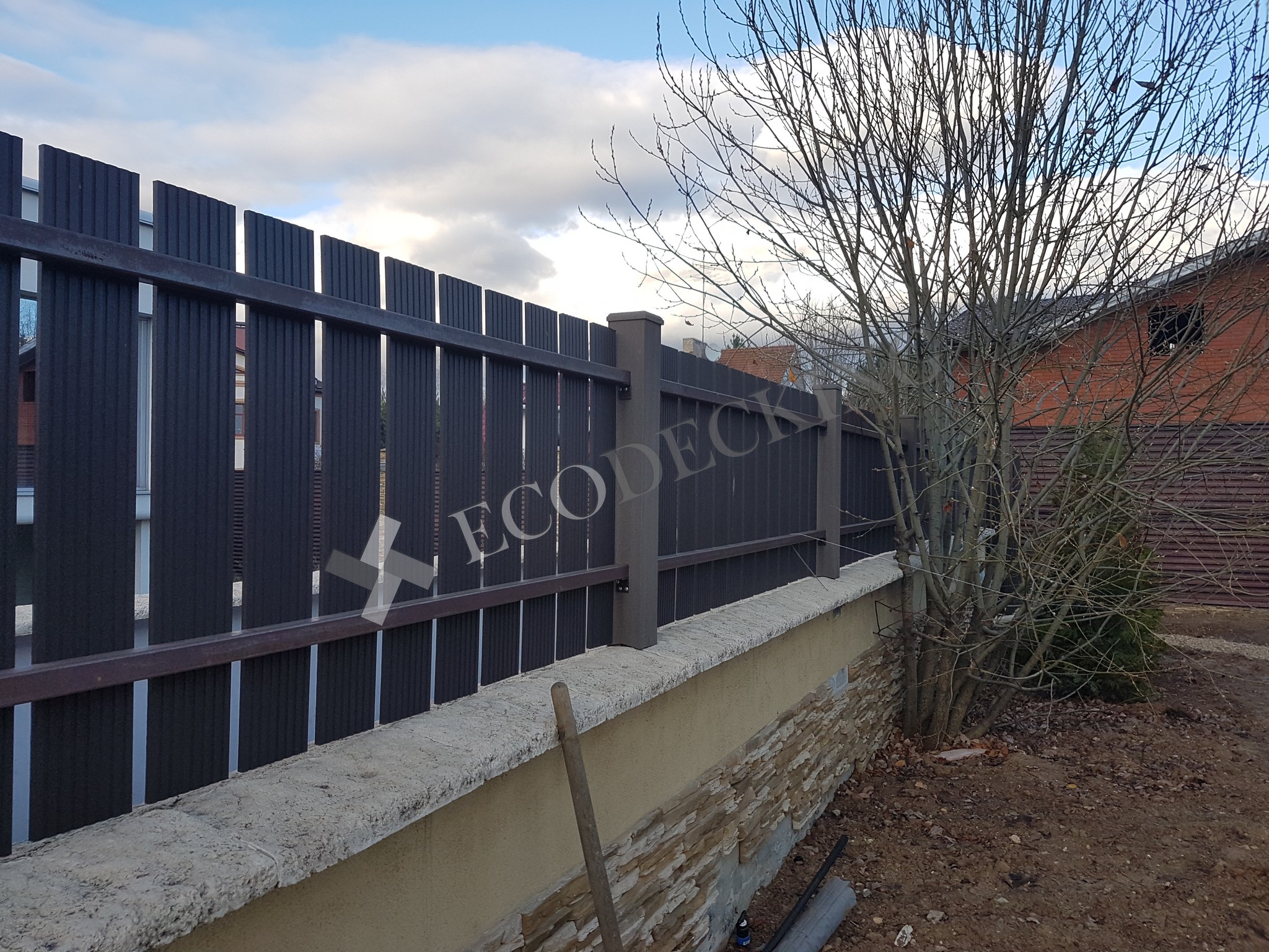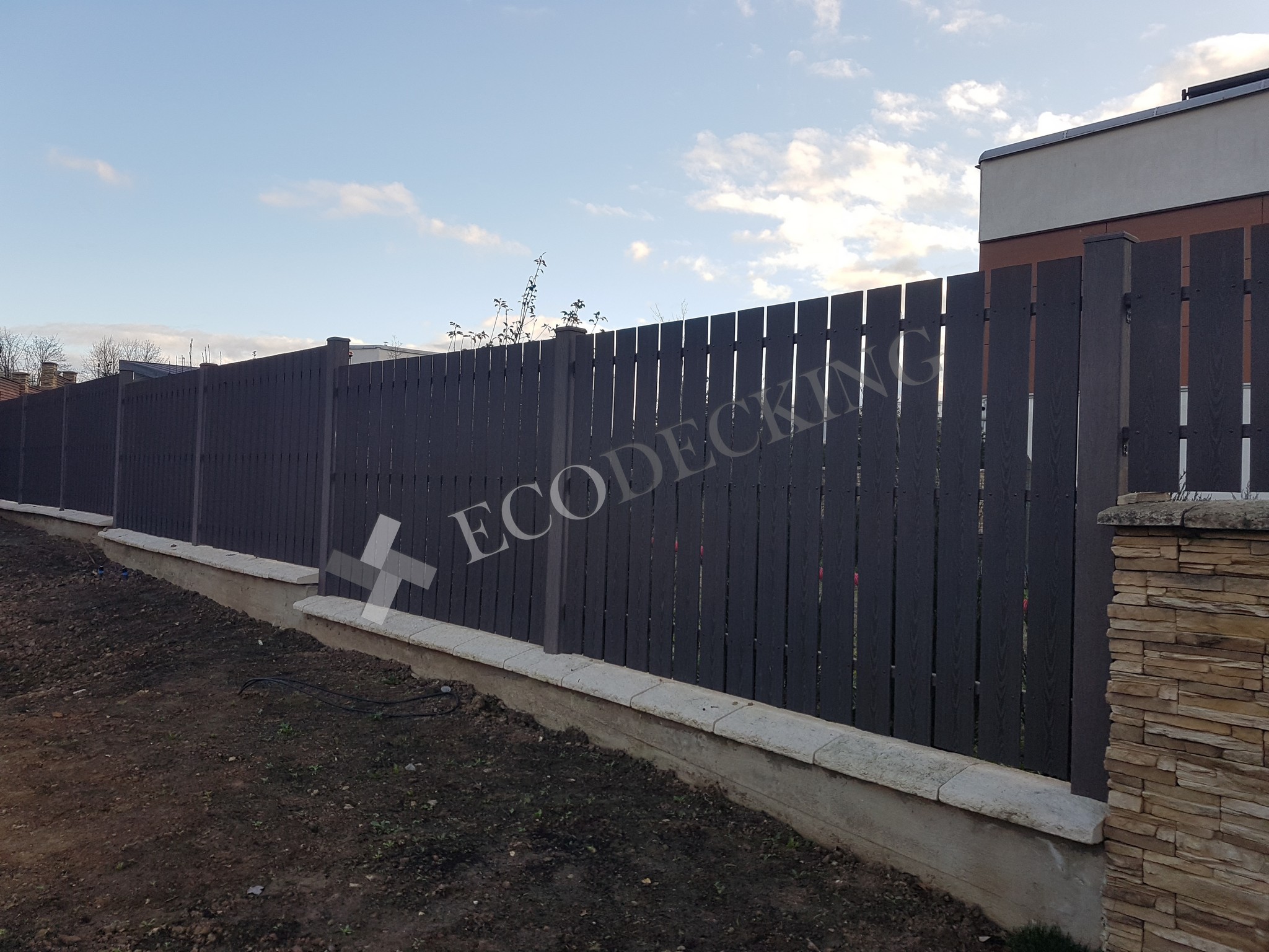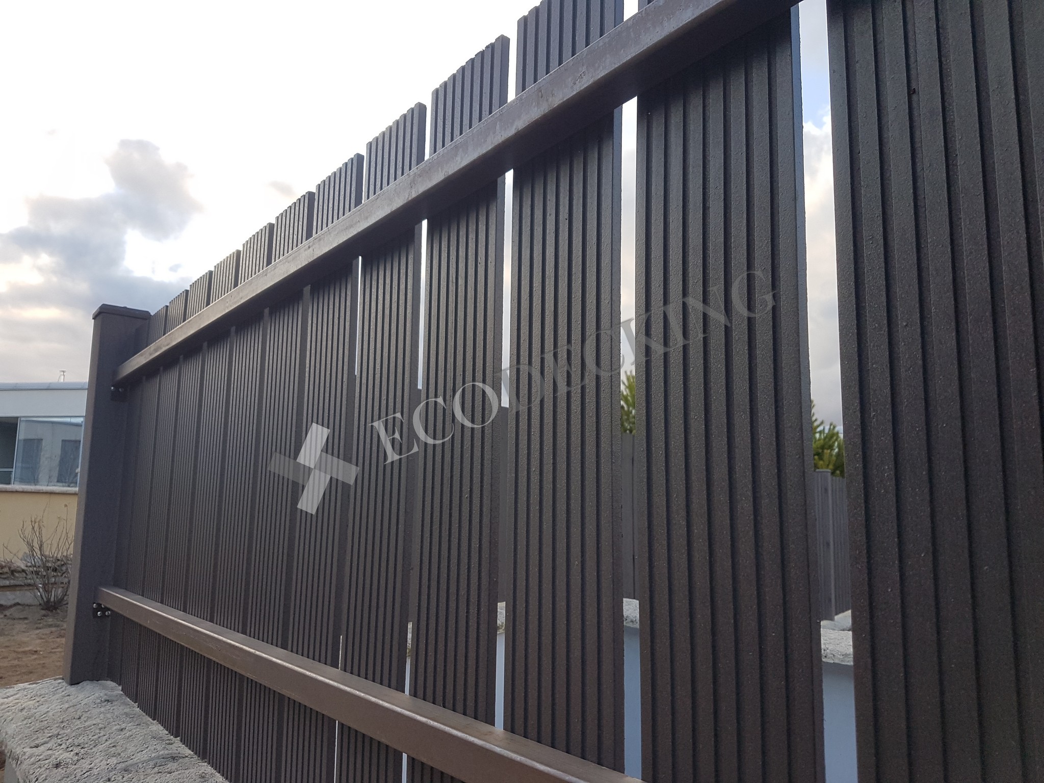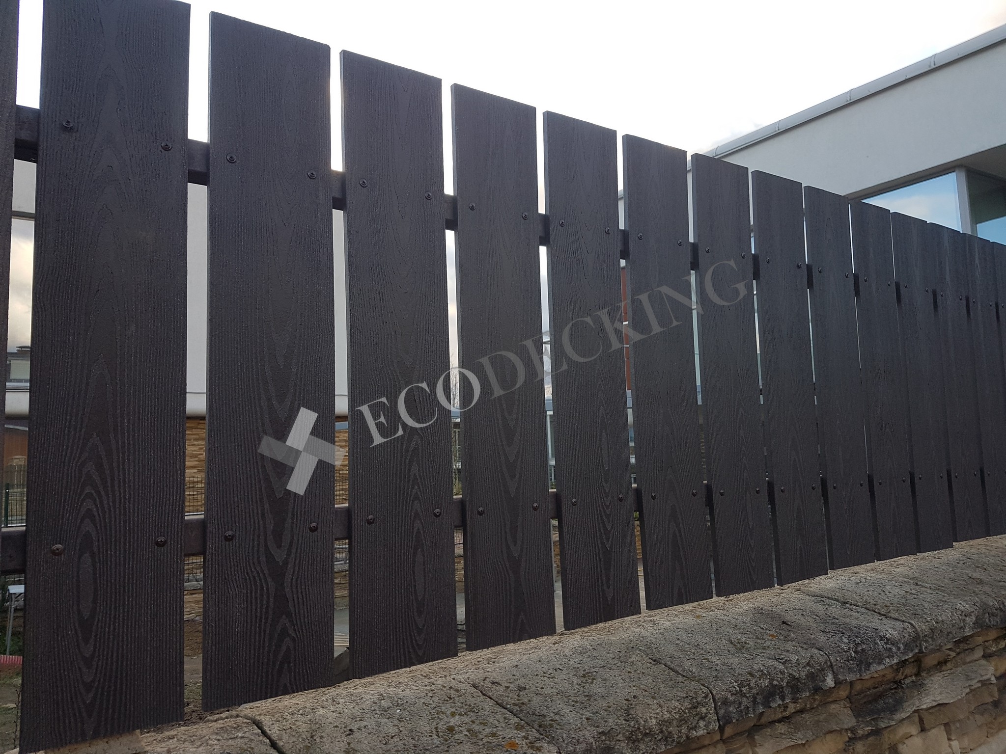 Заборная доска Ecodecking Классик на заборе частного дома. Монтаж выполнялся 10.2019 года.