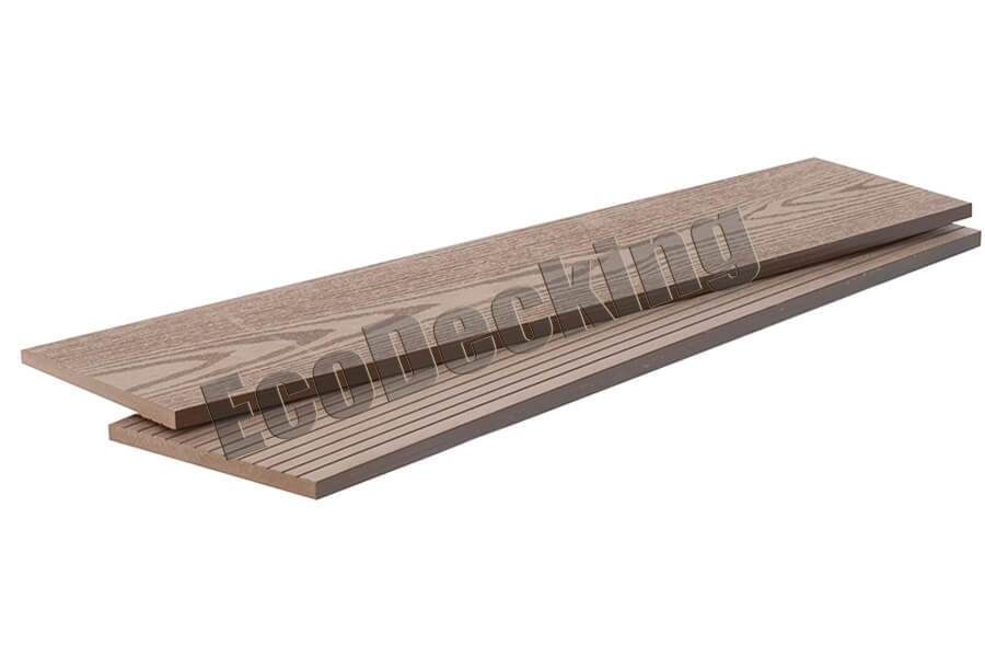 - в качестве лицевой рабочей поверхности часто используется брашинг, т.к. тиснение «под дерево» присутствует только у качественного декинга;
