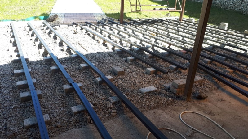 Древесно-полимерный композит можно укладывать на каркас, способный выдержать значительную нагрузку – от 1000 килограмм на квадратный метр. При выборе металлической конструкции рекомендуется использовать квадратную трубу размером более 80 x 80 мм, а для деревянного каркаса – брус не менее 100 x 100 мм.